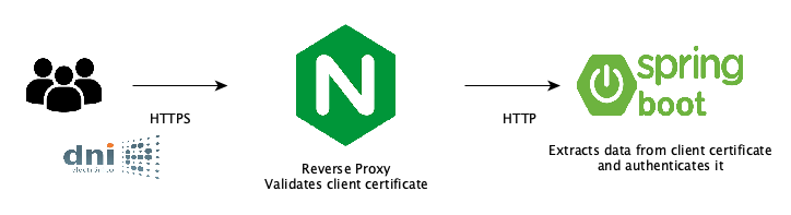 En este post vamos a ver como configurar la autenticación X.509 con un caso práctico, utilizando el DNIe como certificado de cliente, Nginx como proxy inverso, y una aplicación Spring Boot que escucha tráfico HTTP.