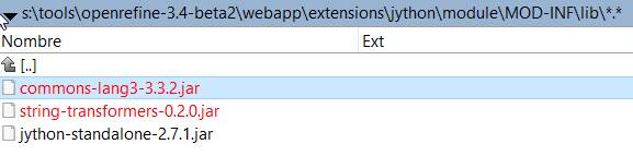 y copiarlos (con OpenRefine parado) en la carpeta %OPENREFINE_HOME%/webapp/extensions/jython/module/MOD-INF/lib