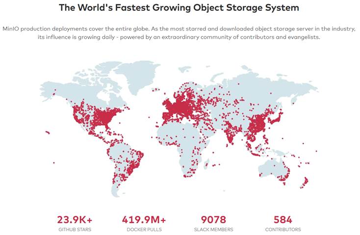MinIO es un software que ofrece almacenamiento de Objetos enfocado en al Rendimiento y liberado bajo la Licencia Apache v2.0 con un API compatible con Amazon S3.
