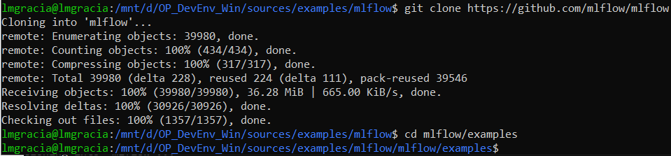 Me clonaré el repositorio de github de mlflow y me iré al directorio examples para acceder a sus ejemplos: