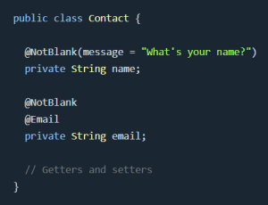Hilla ofrece reglas de validación compartidas para servidor y cliente, lo que ayuda a garantizar la integridad de los datos compartiendo reglas de validación entre servidor y cliente. Las relagas de validación se definen como anotaciones Java vean, esas mismas reglas se aplican a los campos de entrada de los formularios e Hilla vuelve a validar automáticamente el objeto guardado en el servidor: