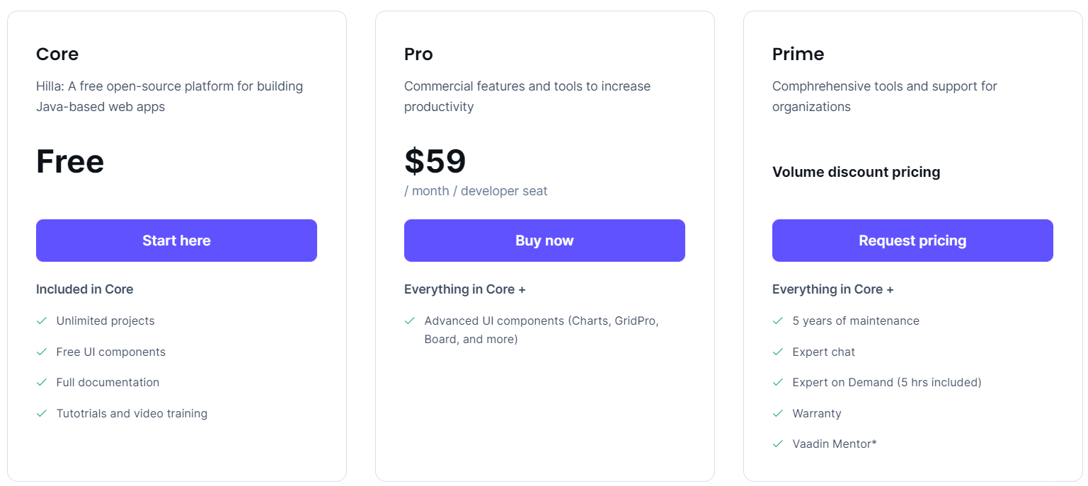 Hilla es open-source aunque ofrece un modelo comercial con características adicionales como componentes UI avanzados y soporte.