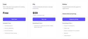 - Componentes UI incluidos: Hilla permite ahorrar tiempo al ofrecer docenas de componentes web Vaadin listos para usar que encapsulan una rica funcionalidad y funcionan con React o Lit. Ofrece también un tema base personalizable.
