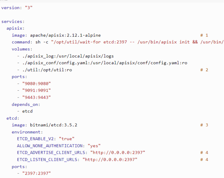Como APISIX usa etcd, para poder lanzarlo con Docker tendré que añadir la dependencia y la configuración: