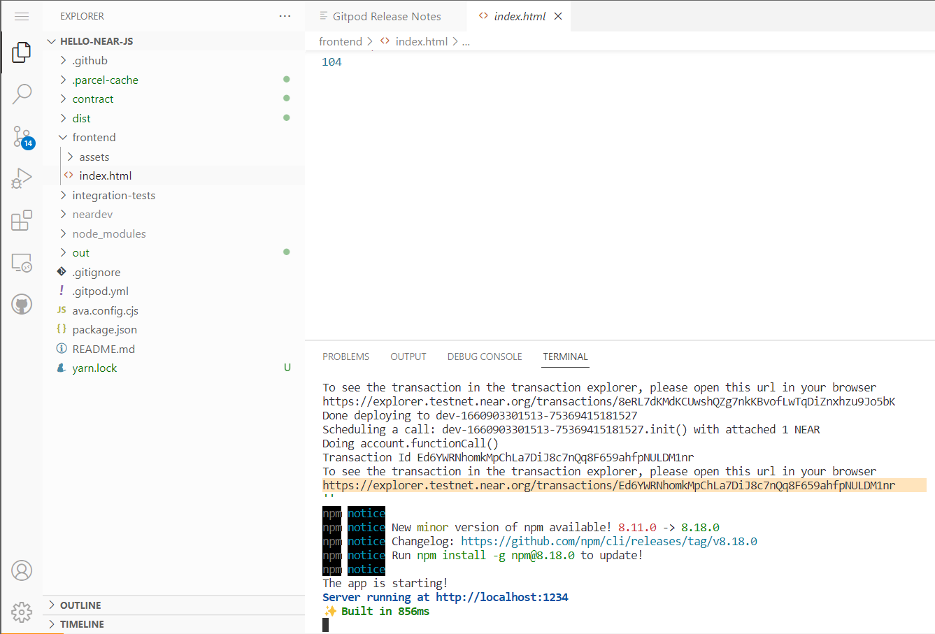 A través del NEAR Explorer puedo ver las transacciones:
